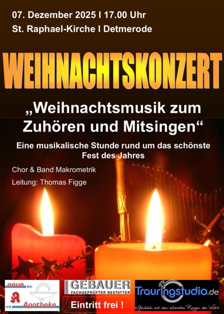 Wir laden Sie wieder herzlich zu unserem alljährlichen Weihnachtskonzert ein.